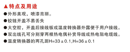 ●大空腔,開蓋后接線板或溫度轉換器外露,便于用戶接線。