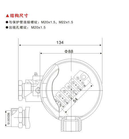 與保護管連接螺紋:M20x1.5,M22x1.5
