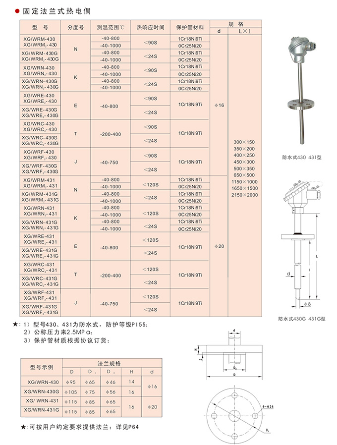 1)型號430、431為防水式,防護等級IP55;