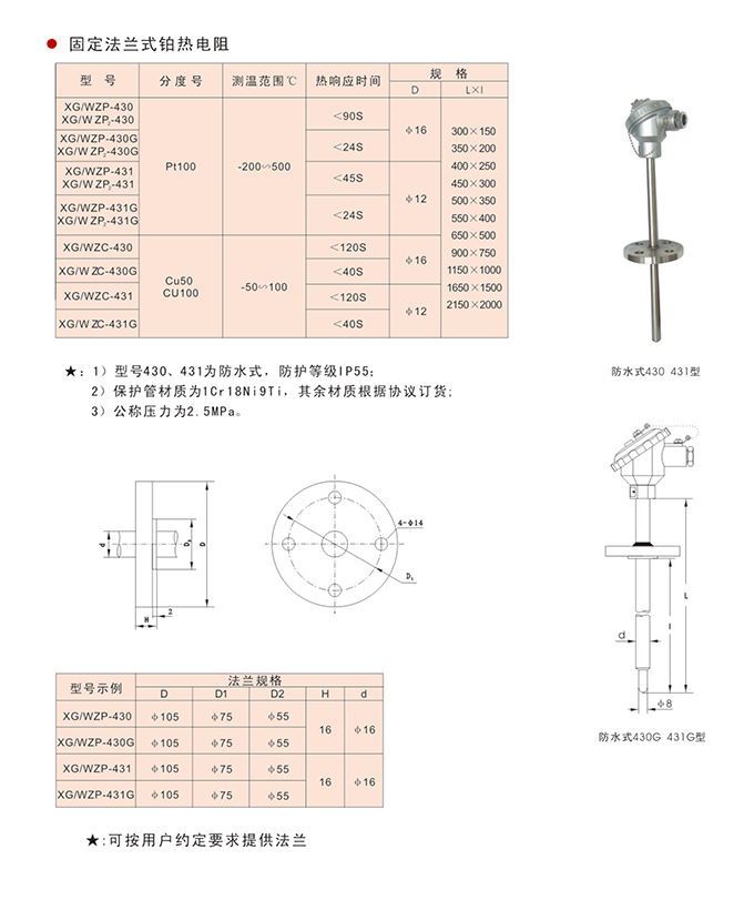 1)型號430、431為防水式,防護(hù)等級IP55;